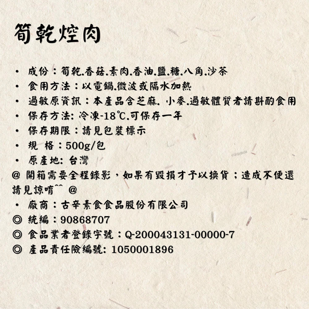 ‧ 成份:筍乾.香菇.素肉.香油.鹽.糖.八角.沙茶