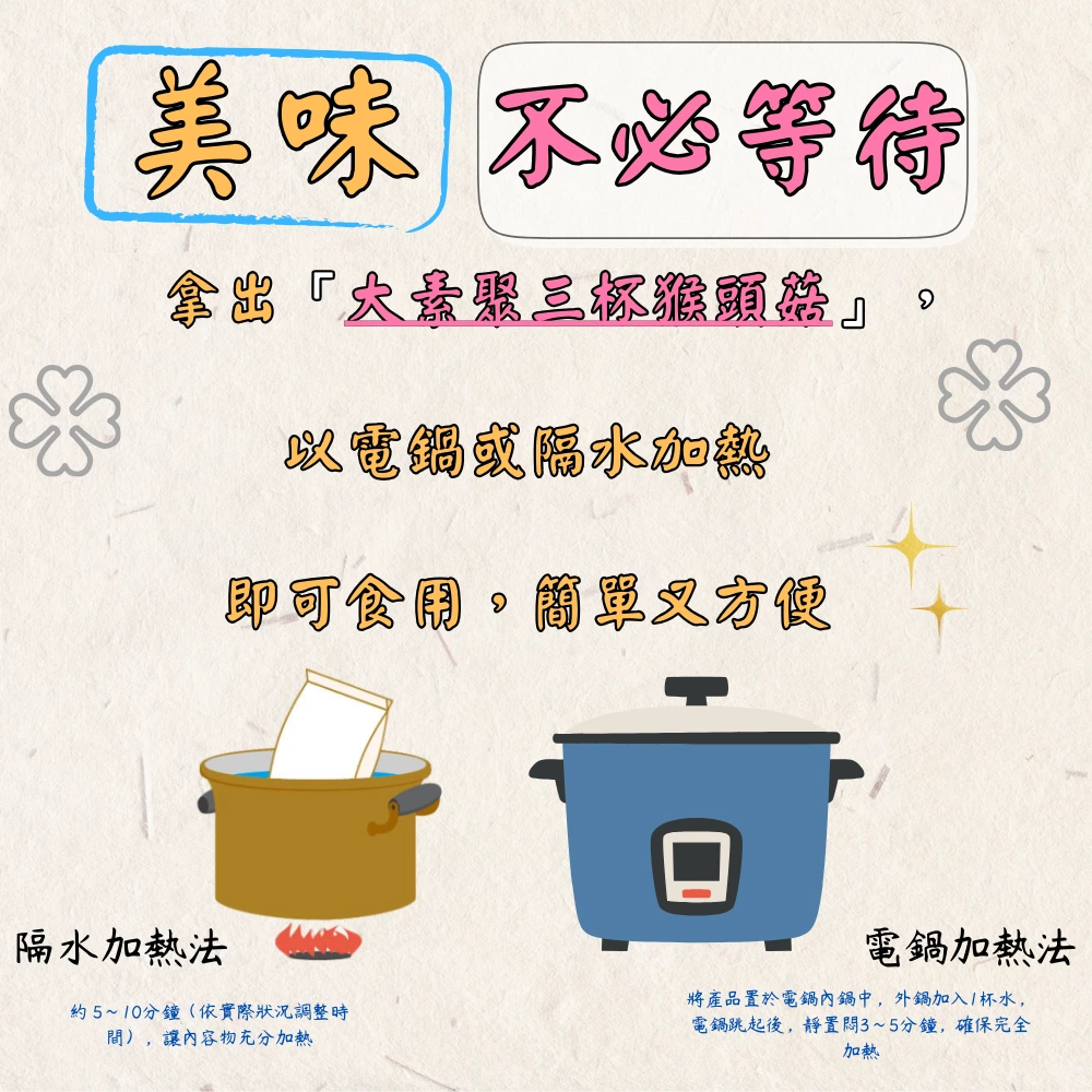 ‧ 食用方法:以電鍋蒸熟.隔水加熱後即可食用。