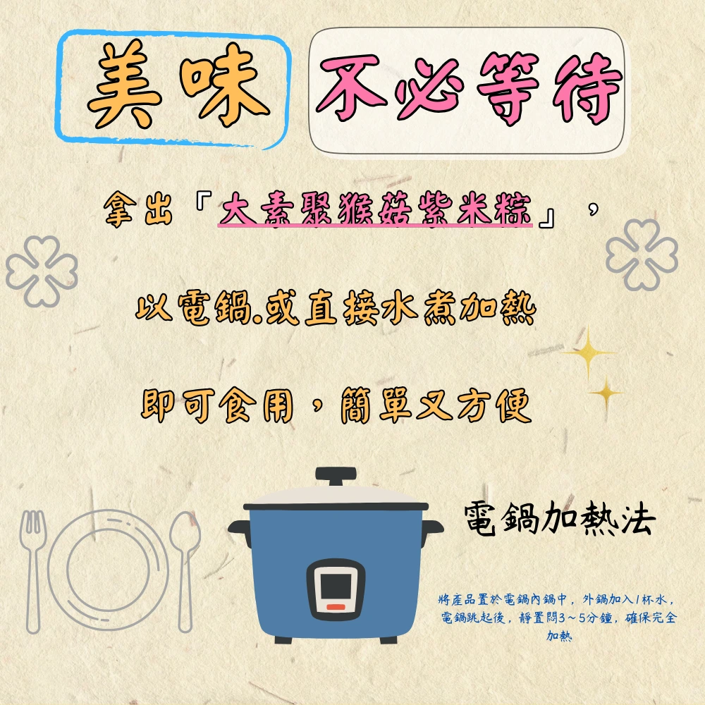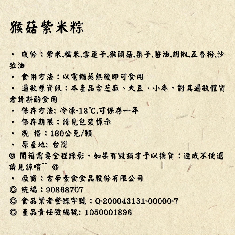 •成分: 紫米.糯米.雪蓮子.猴頭菇.栗子.醬油.胡椒.五香粉.沙拉油