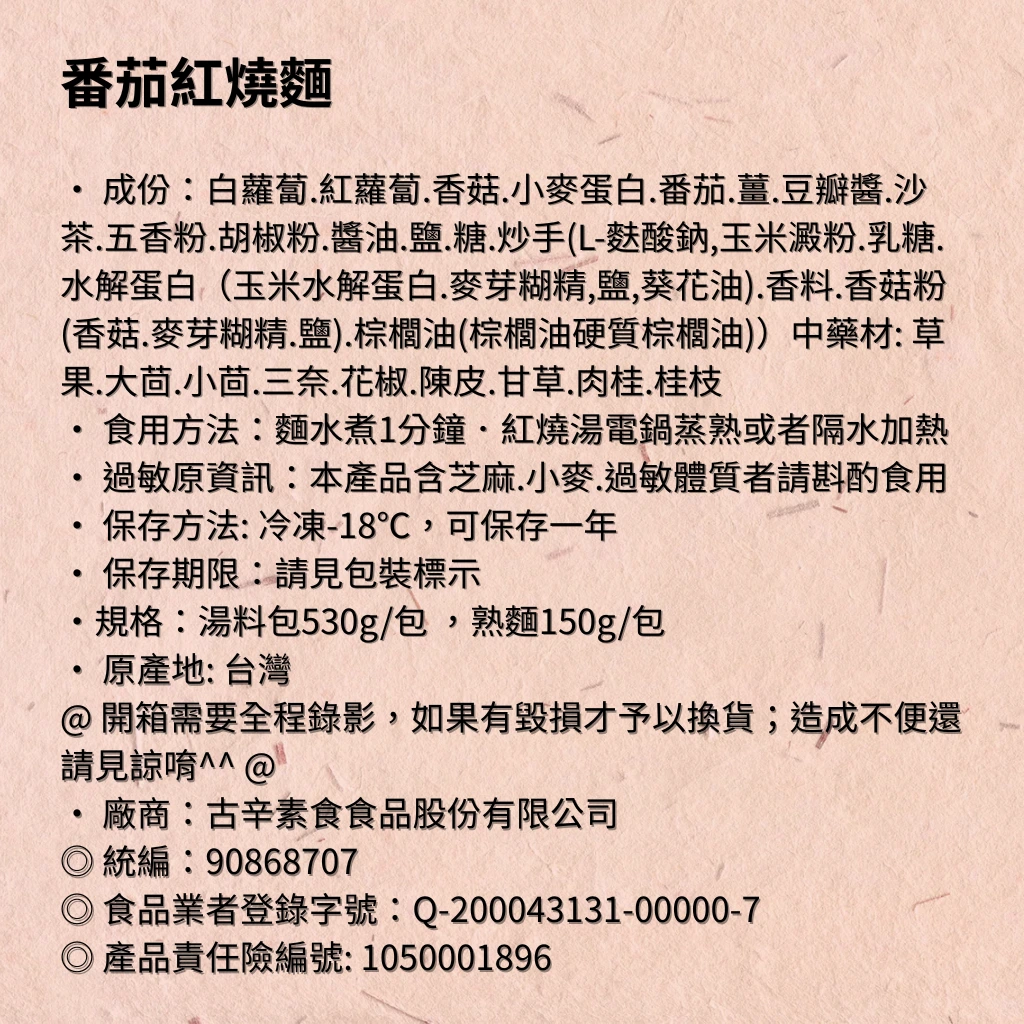 ‧ 食用方法:麵水煮3分鐘.紅燒湯電鍋蒸熟或者隔水加熱