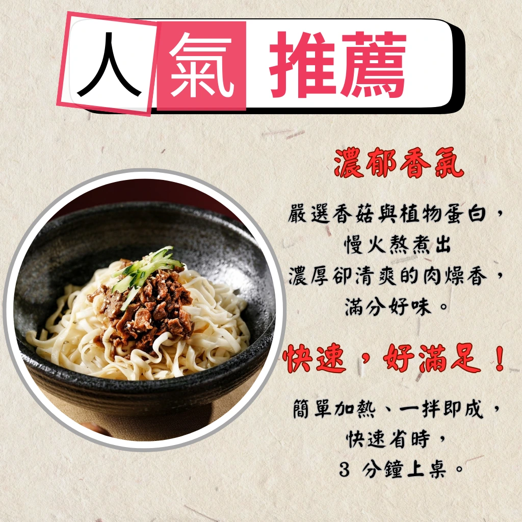 ‧ 食用方法:麵水煮2分鐘.素肉燥隔水加熱