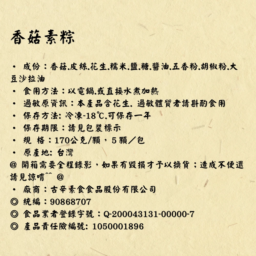 廠商:古辛素食食品股份有限公司